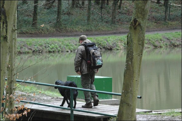 Kleiner Zeitsprung....was sich 5 Minuten zuvor ereignete: Ich machte den dümmst anzunehmenden Fehler indem ich mich mit Paul in die nähe der Aufgabe begab und ihn beim Hund vorher zusehen liess. Natürlich war die mit Schrot beschossene Markierung die den Hunden beim Rückweg als Verleitung geboten wurde in höchstem Masse interessant für Paul.