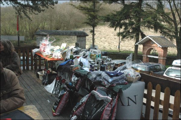 Auf jeden Fall war die Fussarbeit während dieser Aufgabe alles andere als optimal. Als wir dann beim im Boden eingepflanzten Hirtenstab -der als Wegmarkierung für das Ende der Fussarbeit fungierte- ankamen fiel dann auch sofort der Schrotschuss und das Dummy wurde geworfen. Ich ahnte mehr als ich es sah, dass Paul Hintern sich kaum merklich vom Boden löste (das war wirklich eine Hammerverleitung für die Hunde zum Einspringen), aber er hielt zum Glück die Füsse still (puh). Als das Dummy dann in dem kleinen Teich unterhalb des Wasserfalls aufplatschte schaute ich flehend zum Richter, der dann nach kurzer Zeit auch nickte. Paul startete durch, kurz vorm Wasser hielt er schon wieder an und fragte mich. Ich zeigte dann nochmal energisch zum Dummy und er machte seinen gewohnten Bauchplatscher ins Wasser und stieg dann auch wieder an der richtigen Stelle aus. 13 Punkte.....WIR SIND DUUUUUUUUUUUUUUUURCH!!!!! Paul's erster WT und dann noch in Belgien mit solchen Aufgaben bestanden. Wir waren wirklich stolz wie Bolle auf unseren kleinen Mann, was dann abends auch mit 2 ganzen Extra-Heringen aus Holland gebührlich gefeiert wurde. Er brachte sich dann zu Hause angekommen nach dem Festmahl auch sofort in eine stabile Rückenlage und träumte von der Sache mit den Dümmies.