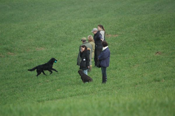 Nachdem wir schon am Samstag beim Cold Game Test des RTT vor Ort waren und viele gute Hunde haben arbeiten sehen, stand nun am Sonntag unser zweiter Workingtest an. Dieser interne WT des Retrievertrainingstreffs versprach wieder eine neue Herausforderung zu werden: vier englische Field Trial-Richter, die mit Sicherheit knackige Aufgaben stellen und auch härter nach FCI-Regeln bewerten werden als es noch vorige Woche bei Lake & Land der Fall war, wo Paul die Schnupperklasse gewinnen konnte. Hinzu kam, dass viele gute Hunde in der Schnupperklasse am Start waren, die wir teilweise schon von Trainingsgruppen oder vom Zuschauen beim RTT kannten. Paul war (wieder mal) der jüngste Starter in seiner Klasse.